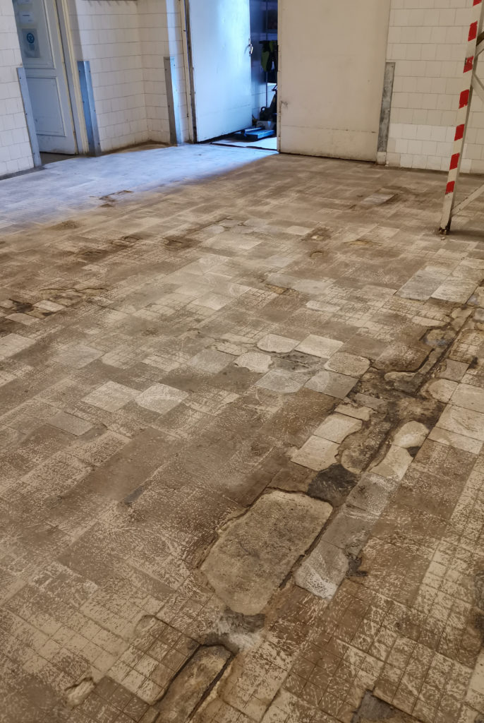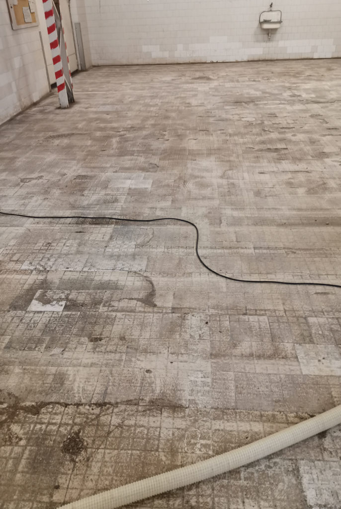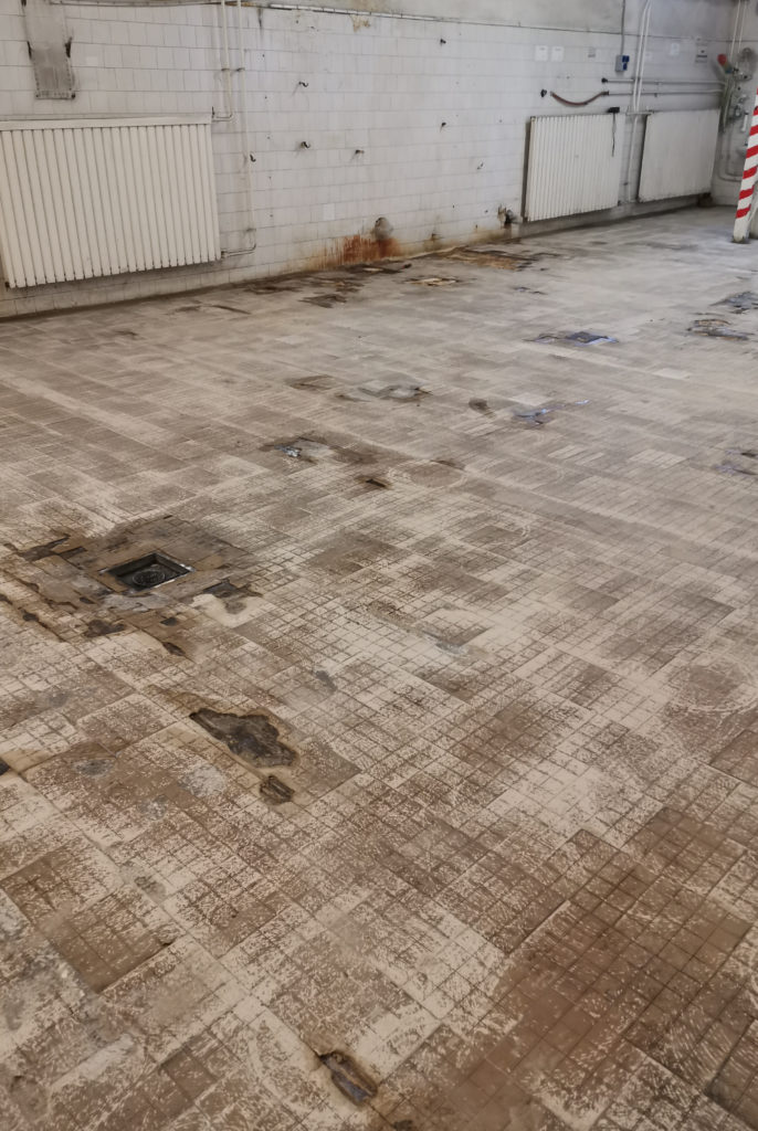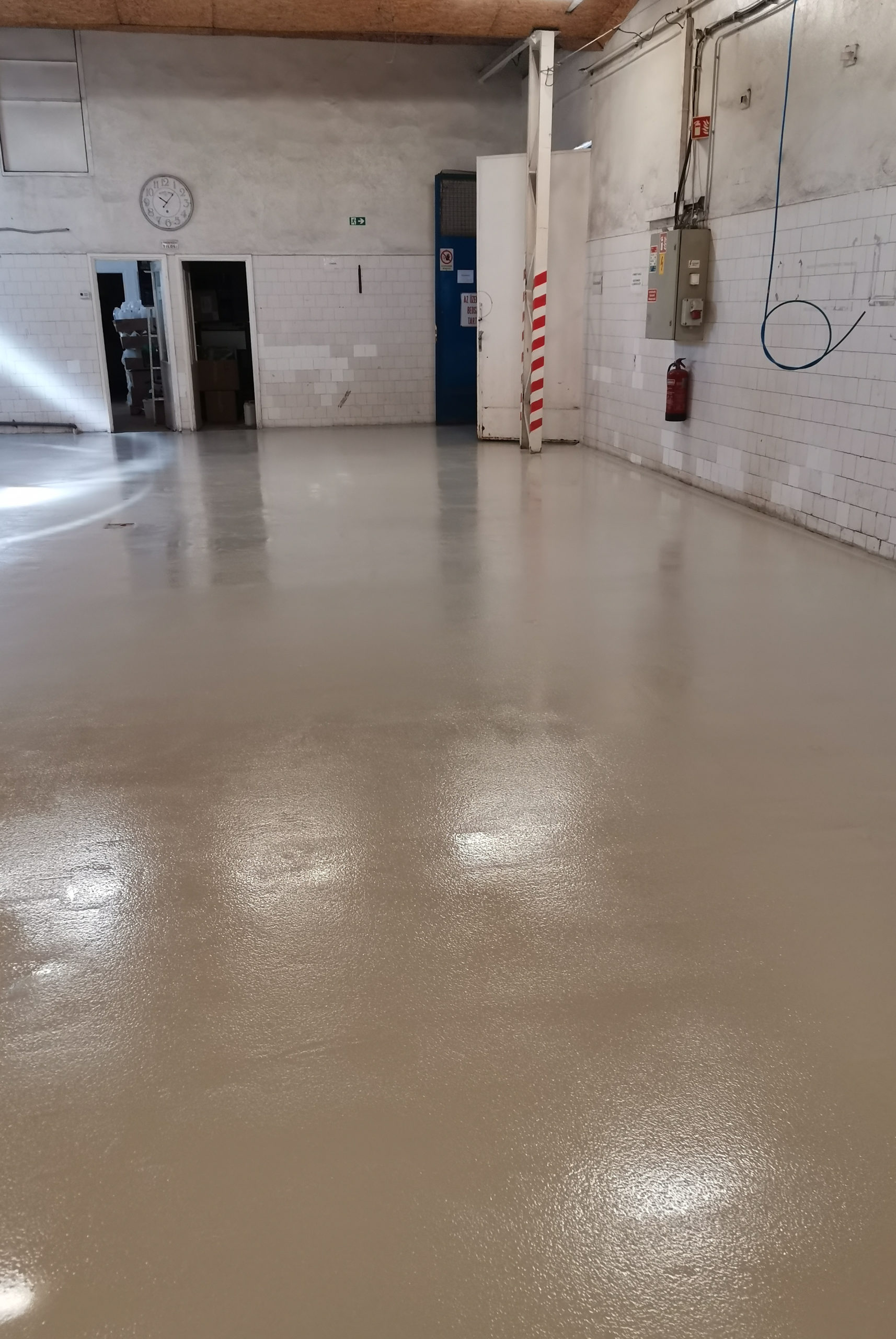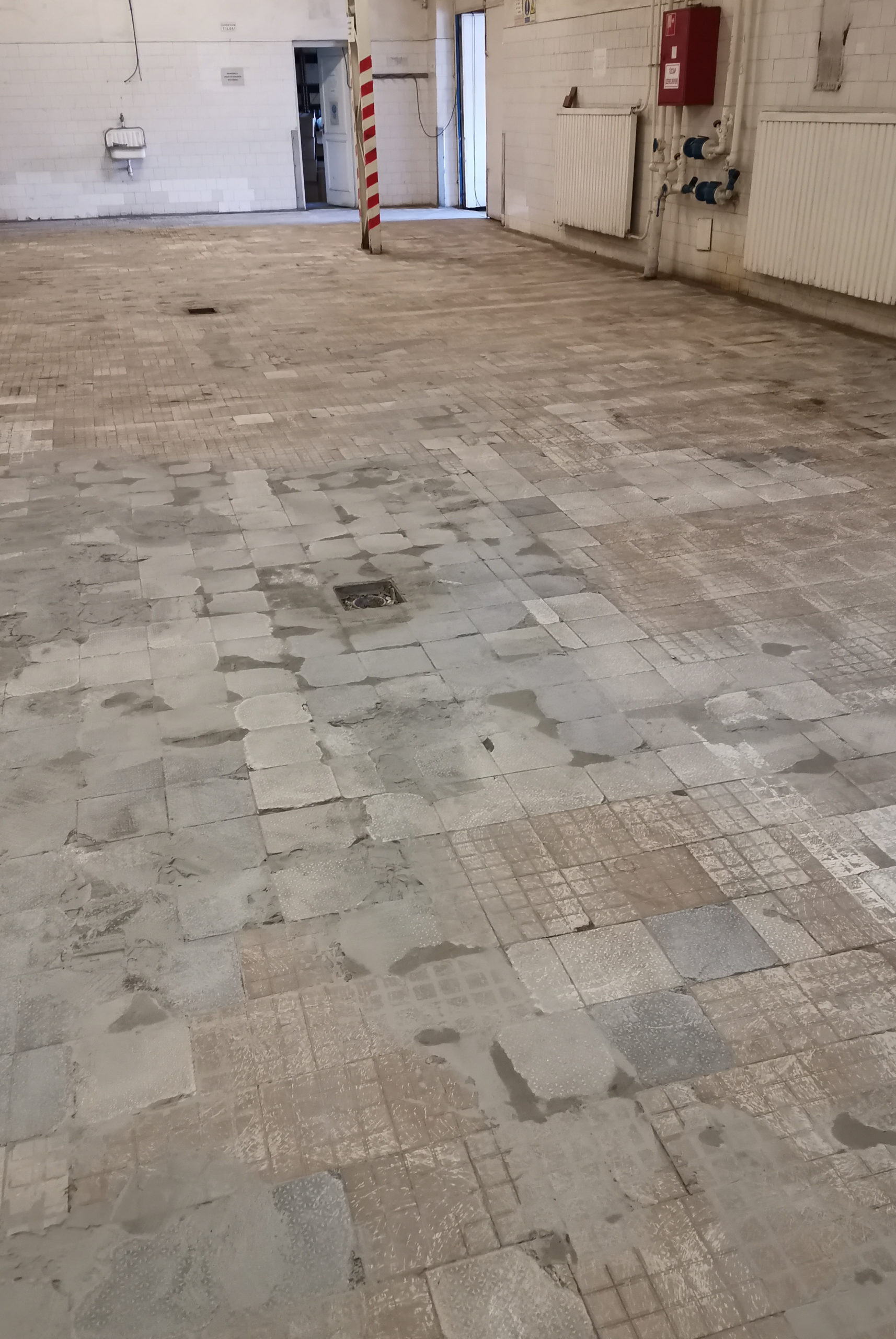 A 170 nm területű palackozó csarnok padlófelújítása során 3 rétegből felépített csúszásmentes felület képzése 4 munkanapot vett igénybe: