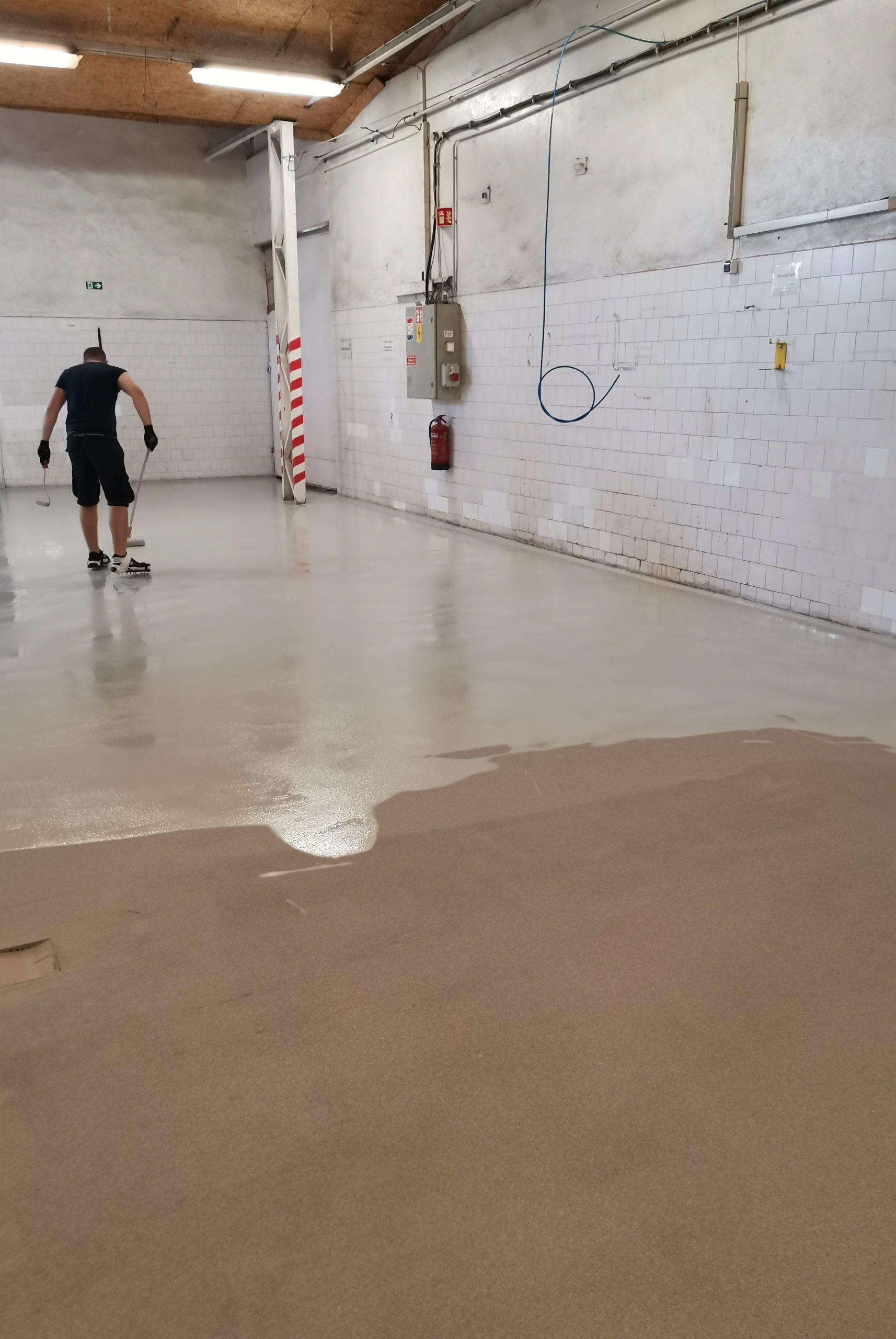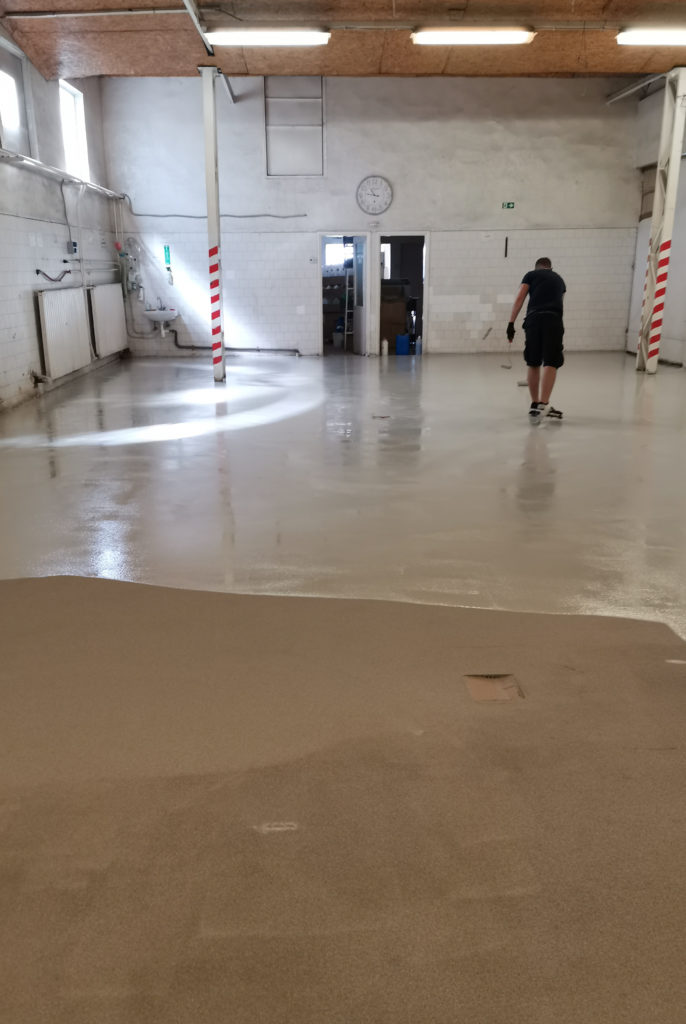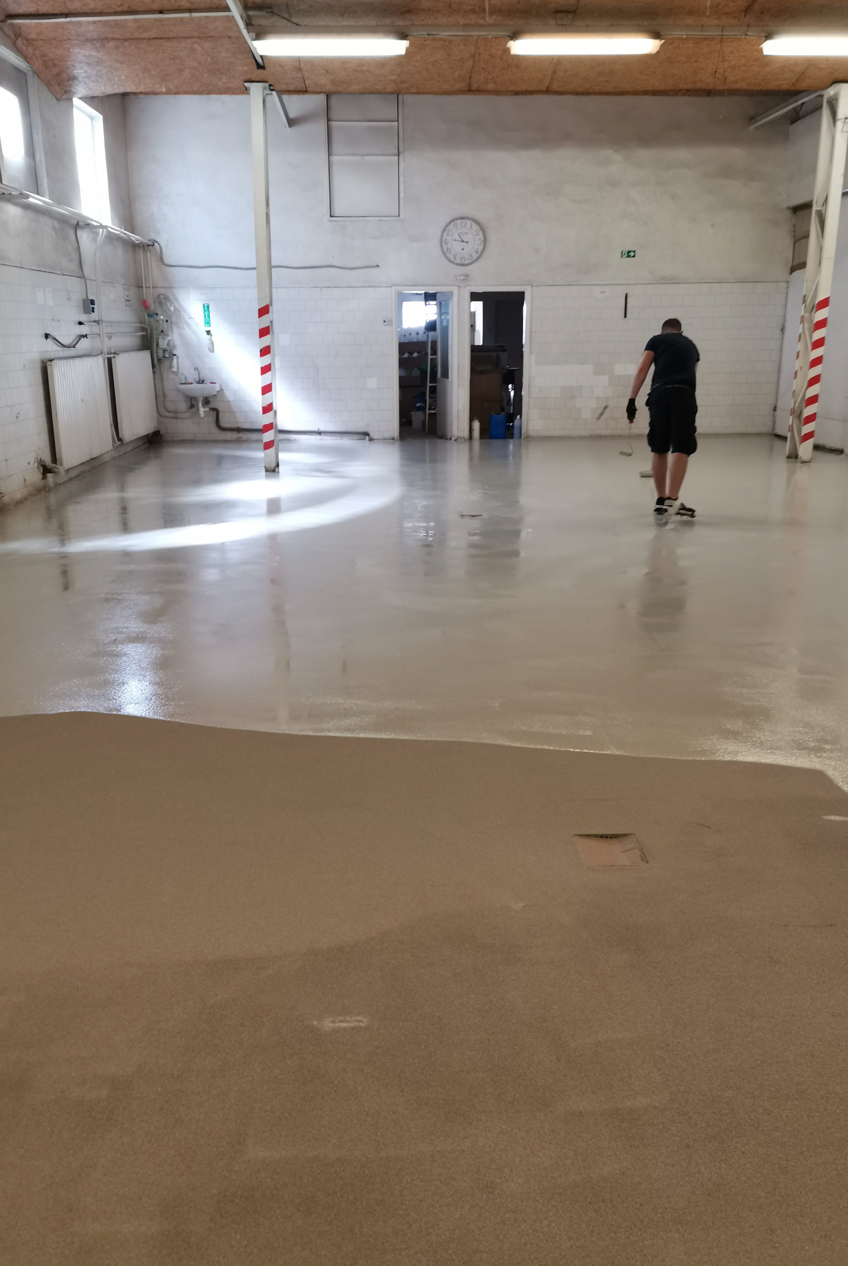 170 nm csarnok padlófelújítása, csúszásmentes felület StoPox epoxi műgyanta rendszerrel