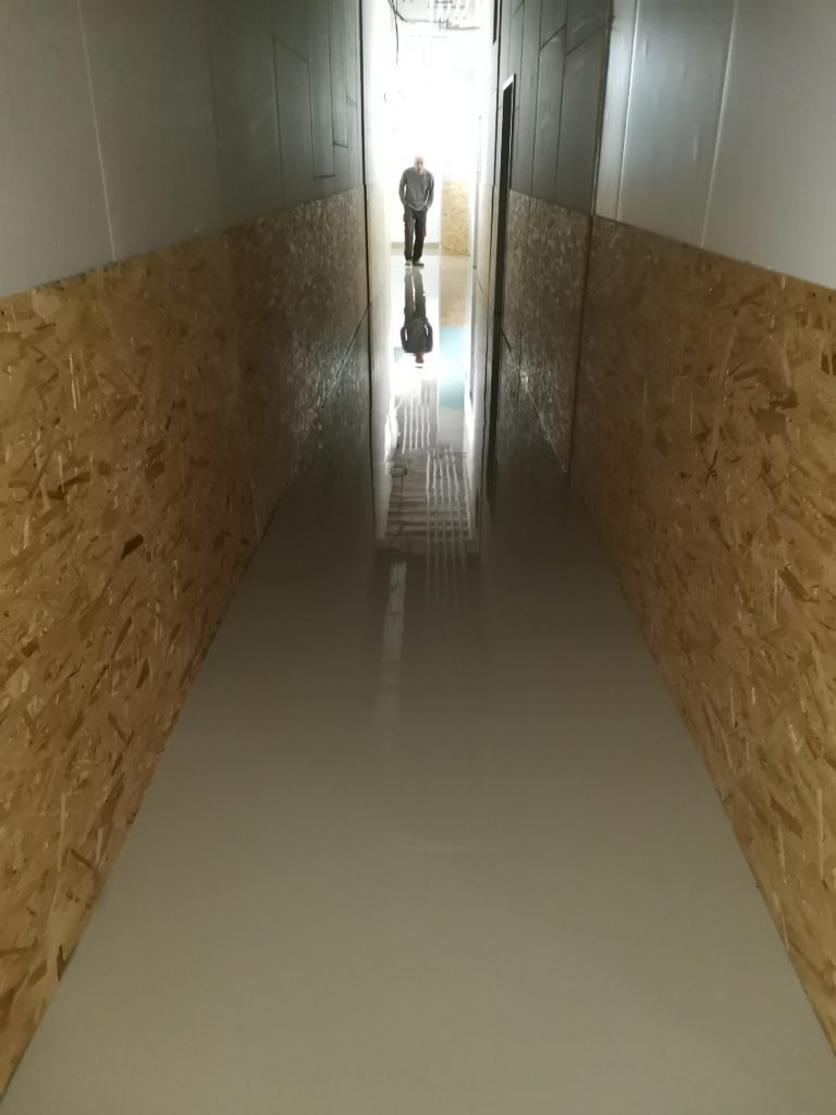 206 m2 raktár padlójának kivitelezése (tükör) műgyanta felület képzése 4 munkanapot vett igénybe