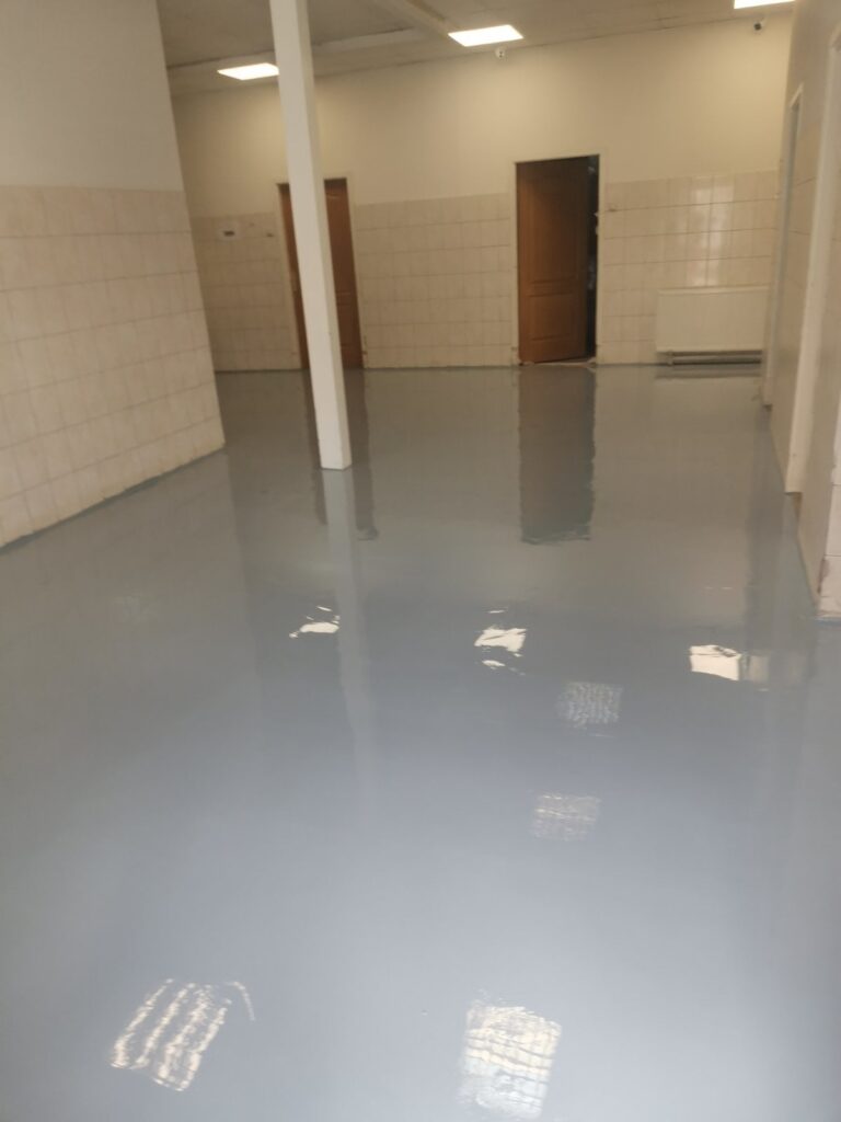 Élelmiszerbolt raktárának burkolása műgyanta padlóval (Nyírkarász)