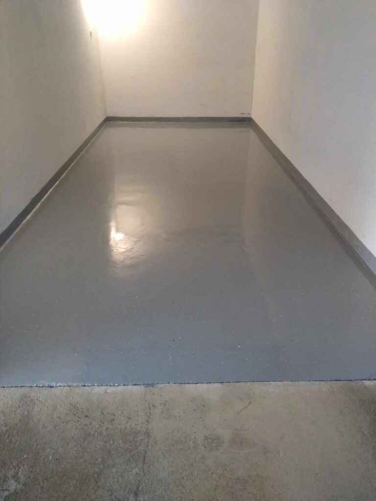 Családi ház mélygarázsának tartós és vízálló műgyanta padlóval történő borítása könnyen tisztíthatóvá és egyedi megjelenésűvé varázsolja a helyiséget.