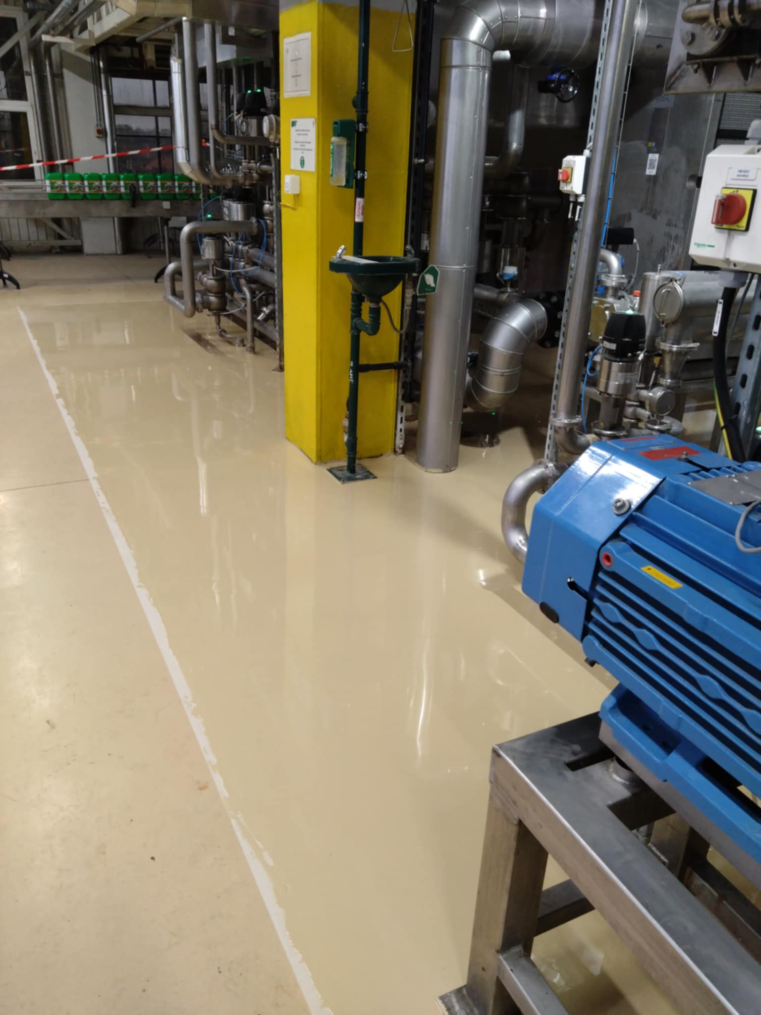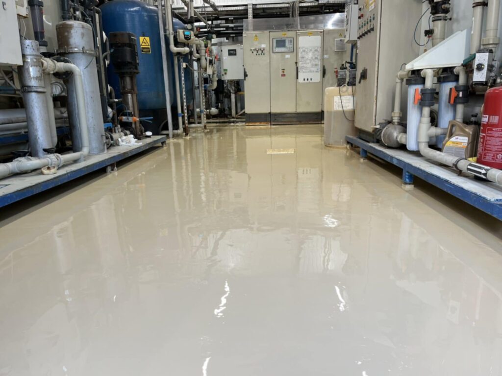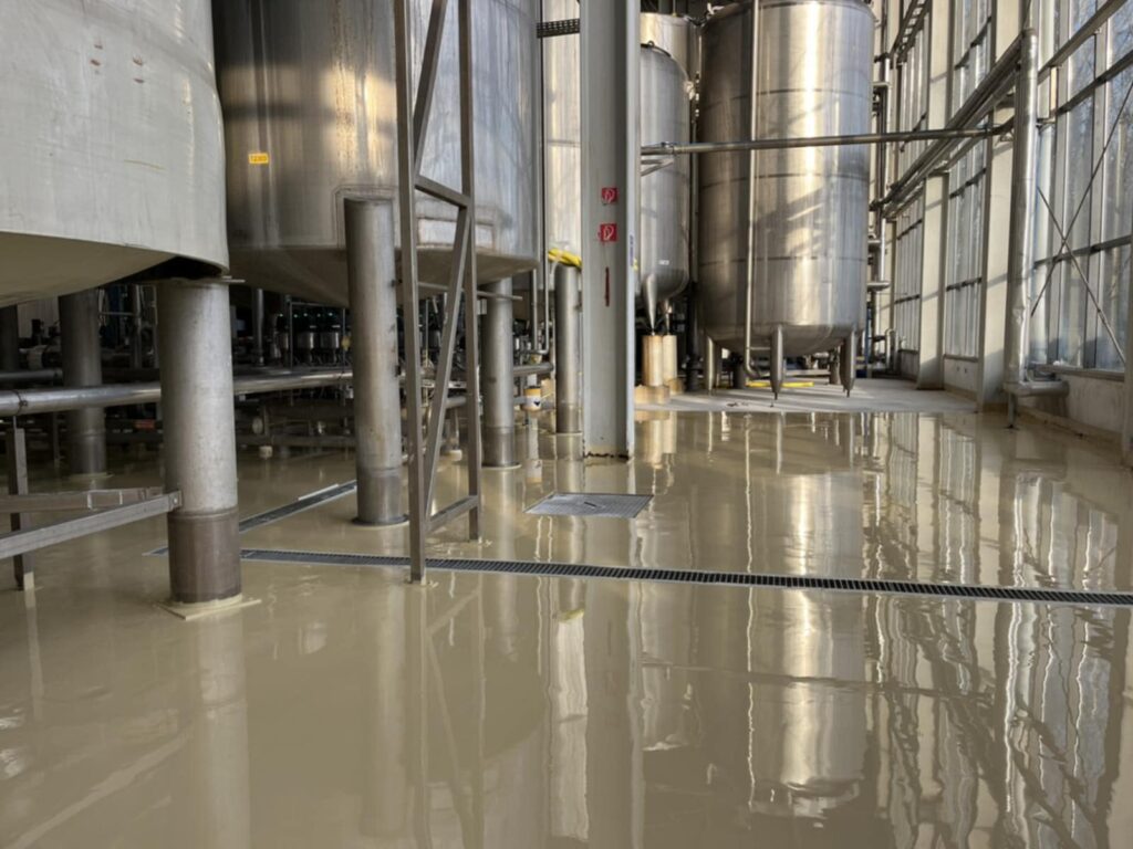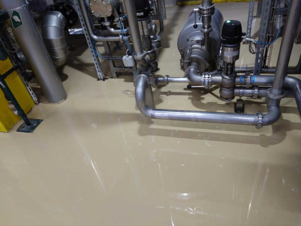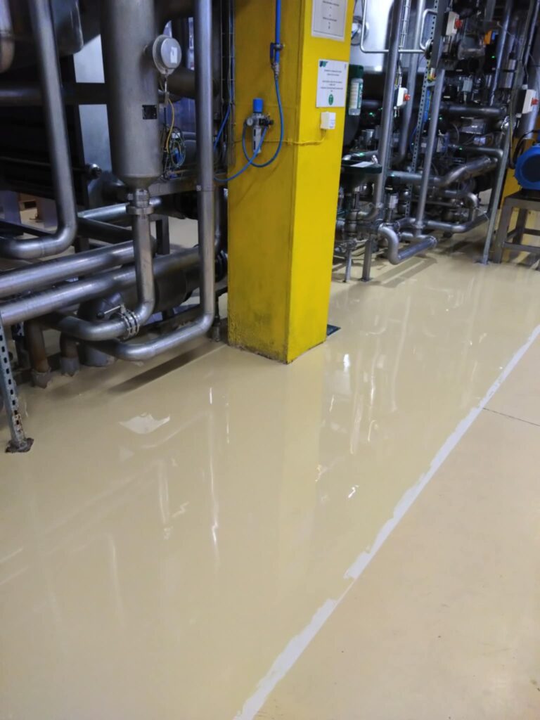 Az érintett helyiségek korszerű, tartós és esztétikus műgyanta padlóburkolatot kaptak, megfelelve a legmagasabb ipari követelményeknek.