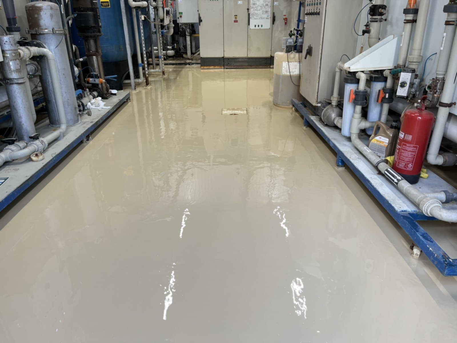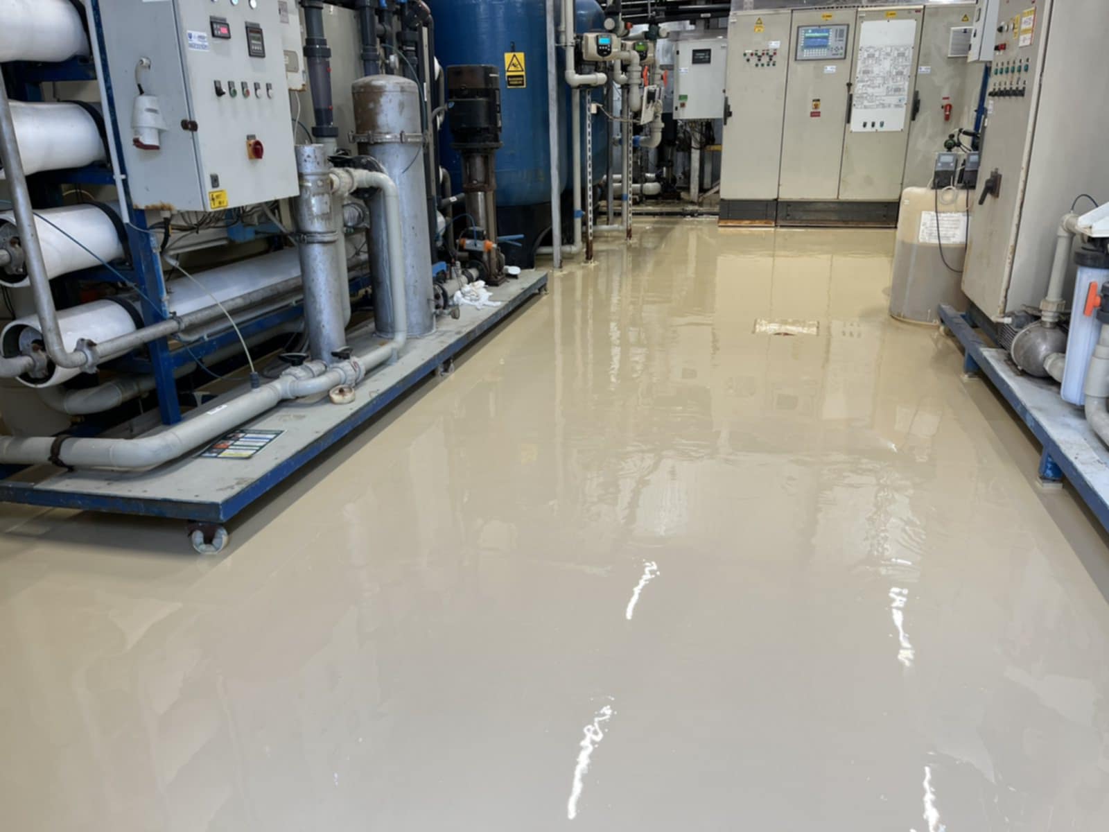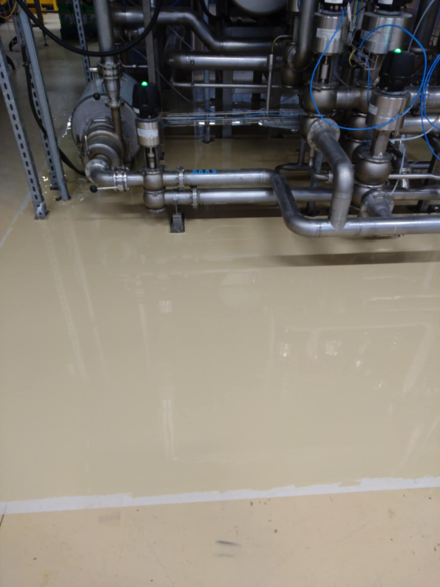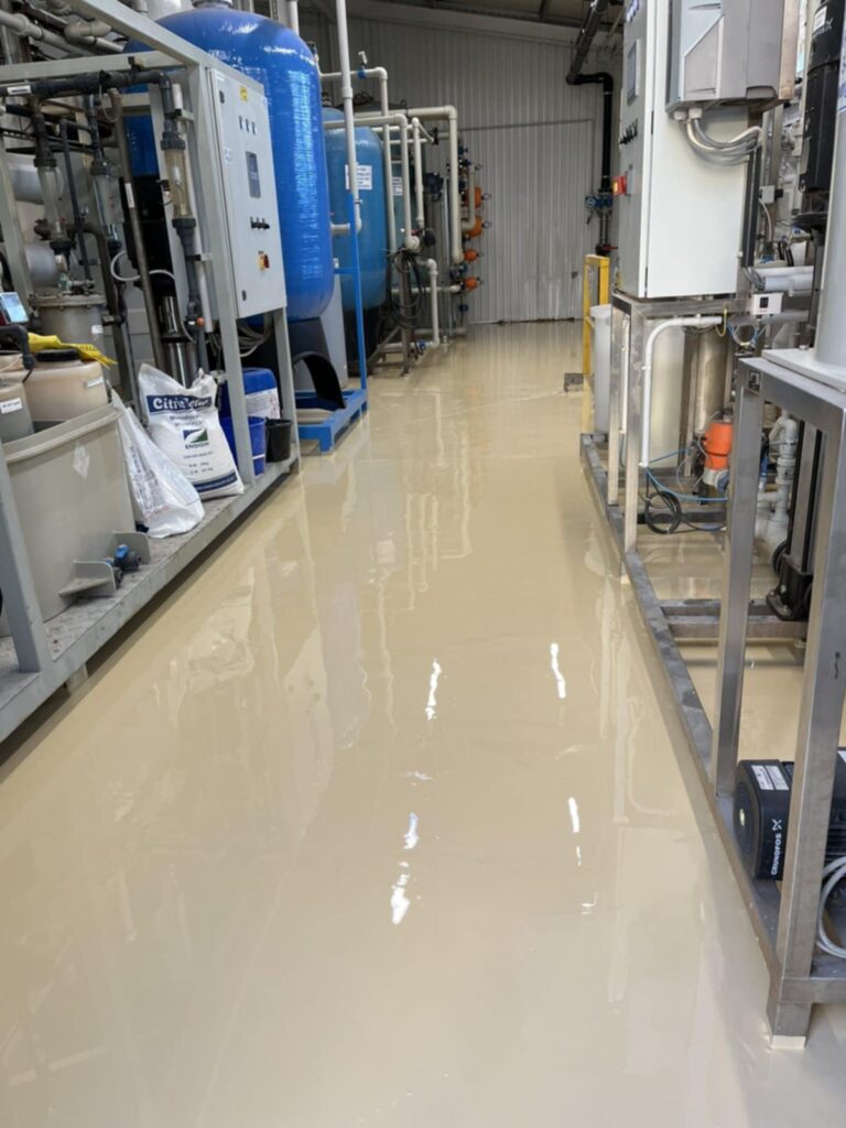 Az érintett helyiségek korszerű, tartós és esztétikus műgyanta padlóburkolatot kaptak, megfelelve a legmagasabb ipari követelményeknek.